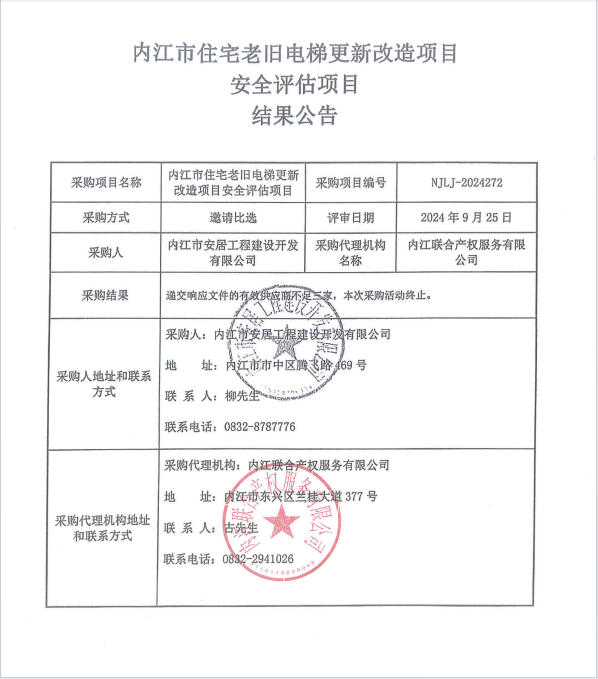内江市住宅老旧电梯更新改造项目安全评估项目结果公告
