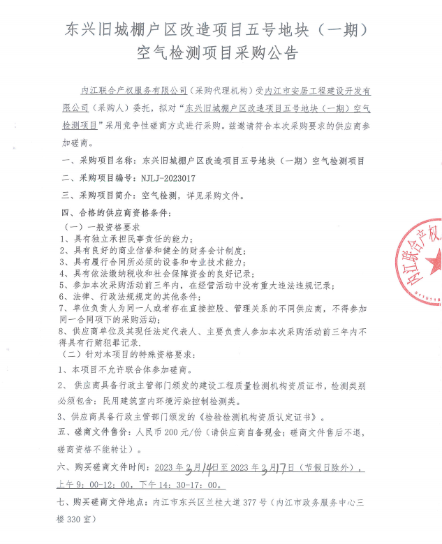 东兴旧城棚户区改造项目五号地块(一期)空气检测项目采购公告