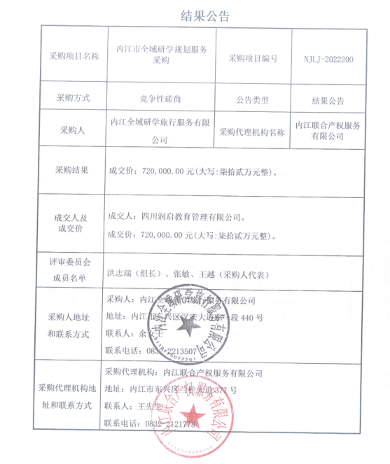 内江市全域研学规划服务采购结果公告