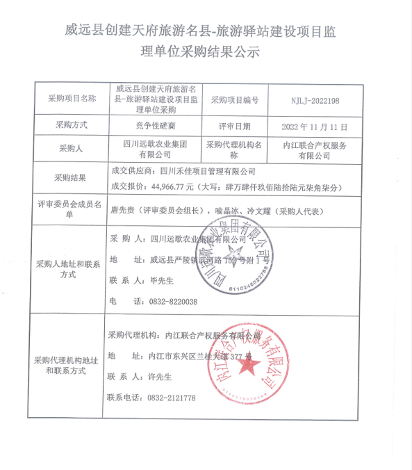 威远县创建天府旅游名县-旅游驿站建设项目监理单位采购结果公示