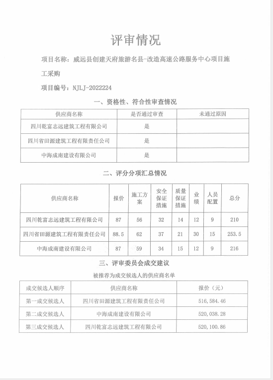 威远县创建天府旅游名县-改造高速公路服务中心项目施工采购结果公示