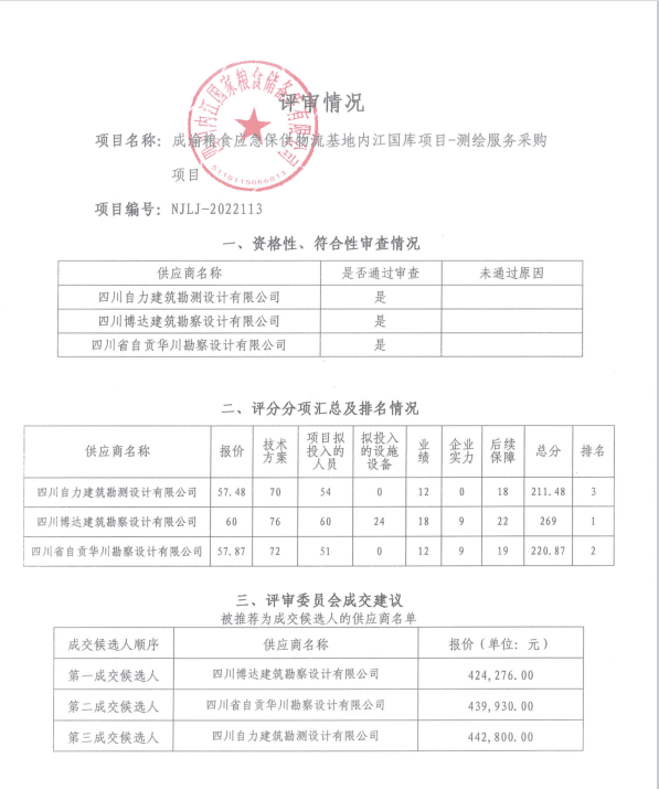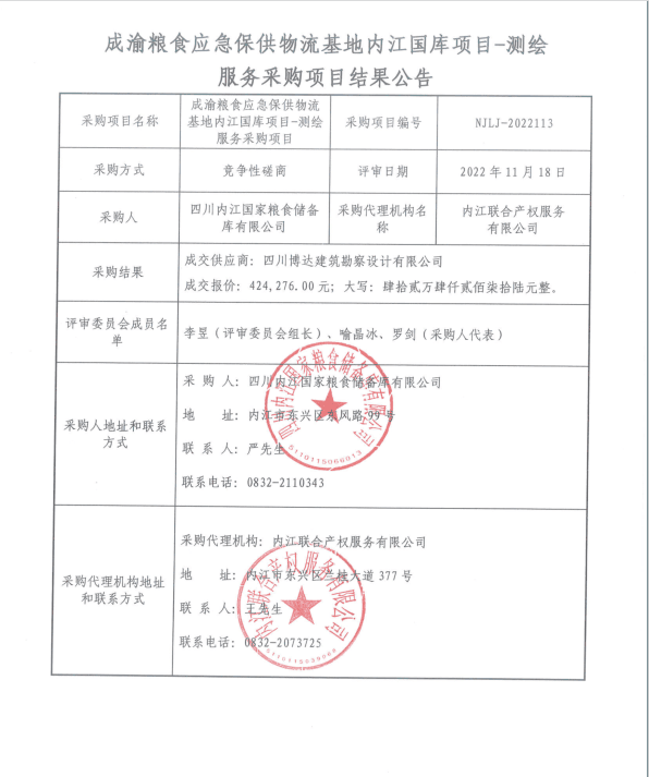 成渝粮食应急保供物流基地内江国库项目-测绘服务采购项目结果公告