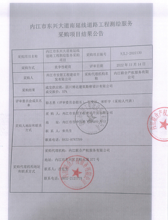 内江市东兴大道南延线道路工程测绘服务采购项目结果公告