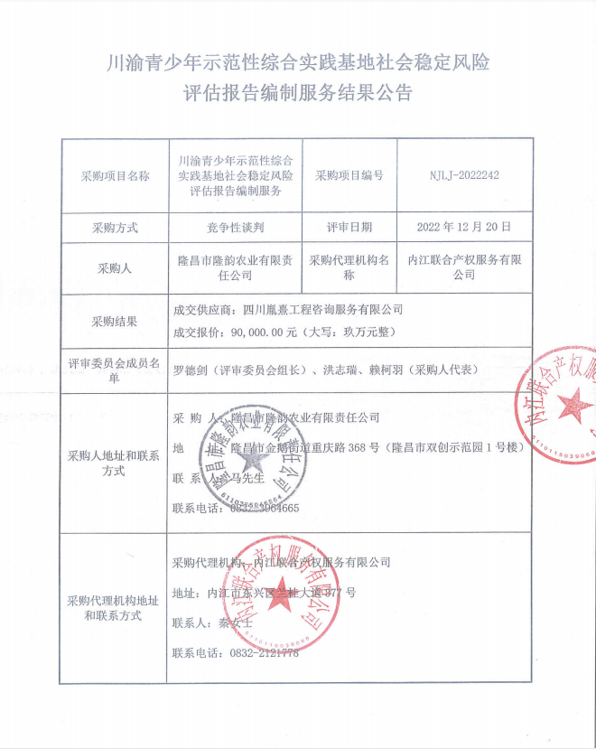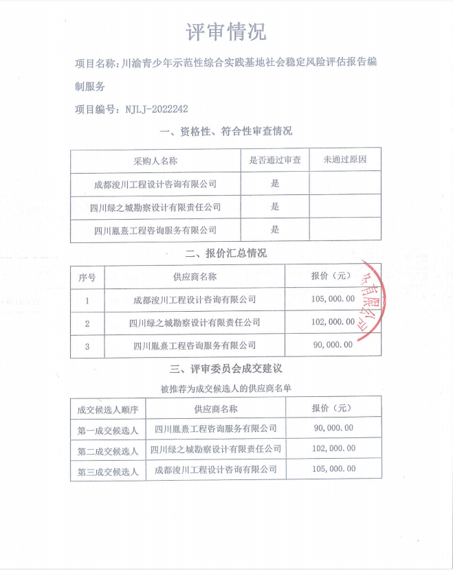 川渝青少年示范性综合实践基地社会稳定风险评估报告编制服务结果公告