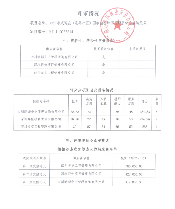 内江市威远县(连界片区)国家储备林项目融资综合咨询服务结果公告