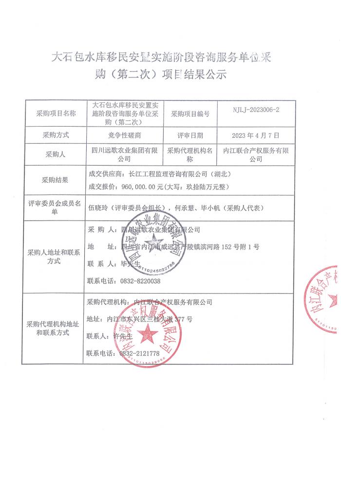 大石包水库移民安置实施阶段咨询服务单位采购(第二次)