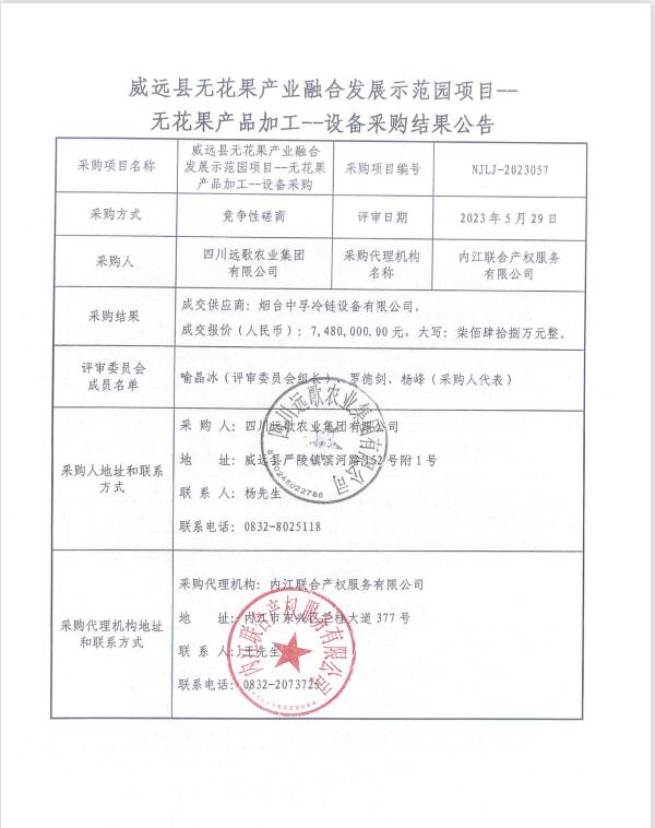 威远县无花果产业融合发展示范园项目--无花果产品加工--设备采购结果公告