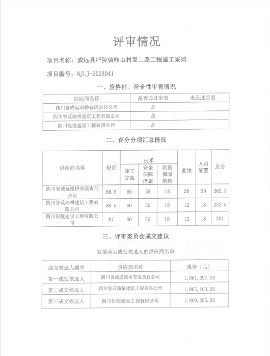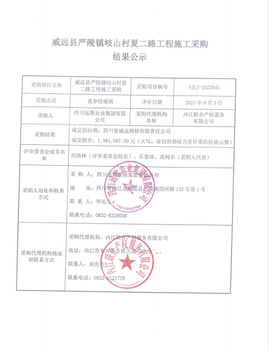 威远县严陵镇岐山村夏二路工程施工采购结果公示