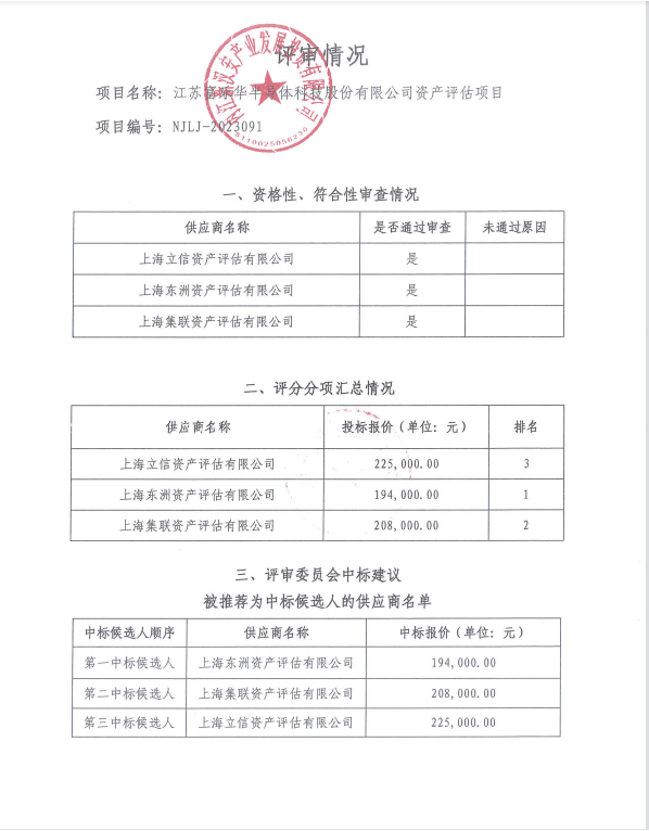 江苏富乐华半导体科技股份有限公司资产评估项目结果公告