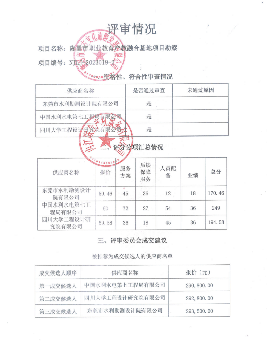 隆昌市职业教育产教融合基地项目勘察结果公告