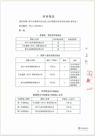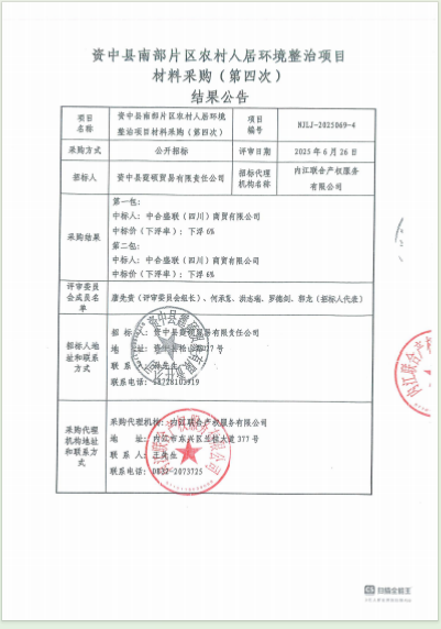 资中县南部片区农村人居环境整治项目材料采购(第四次)结果公告