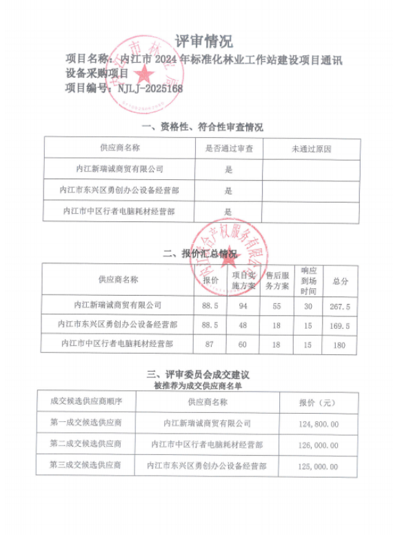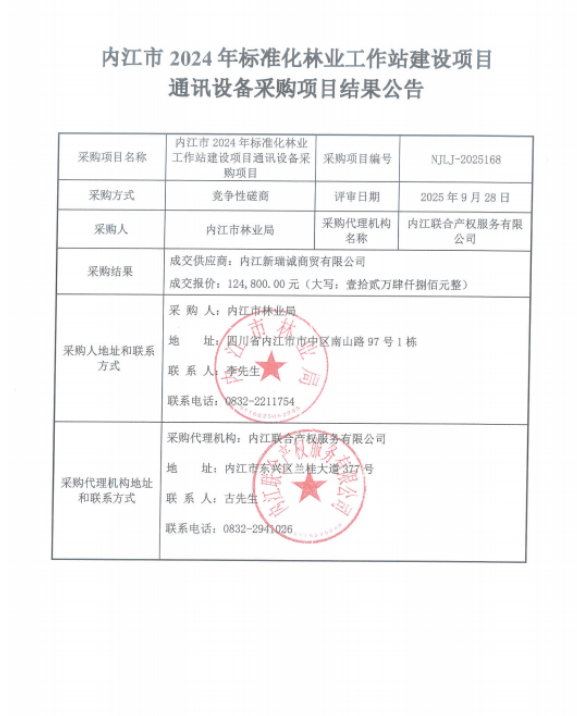 内江市2024年标准化林业工作站建设项目通讯设备采购项目结果公告