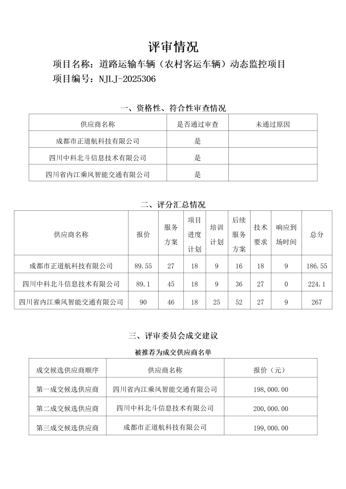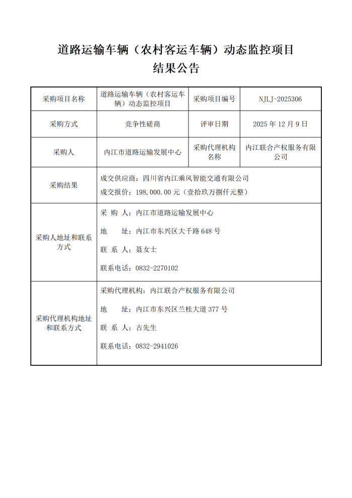 道路运输车辆(农村客运车辆)动态监控项目结果公告