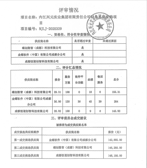 内江兴元实业集团有限责任公司财务系统采购项目结果公告